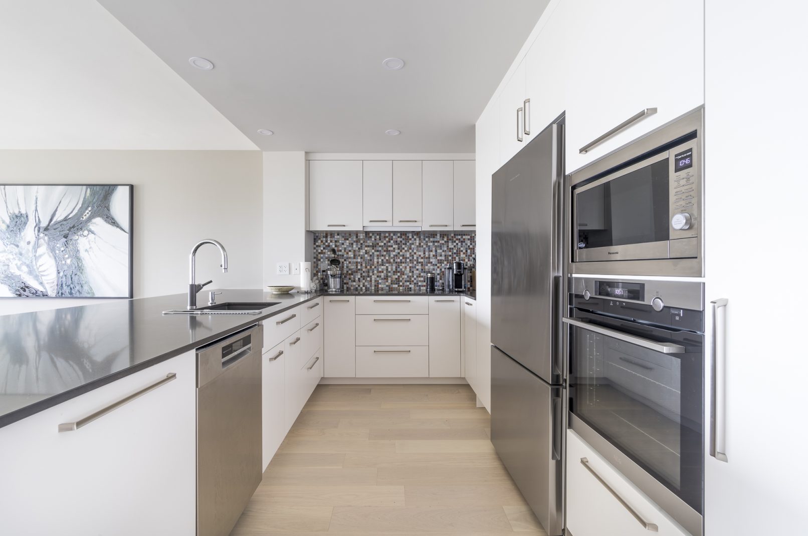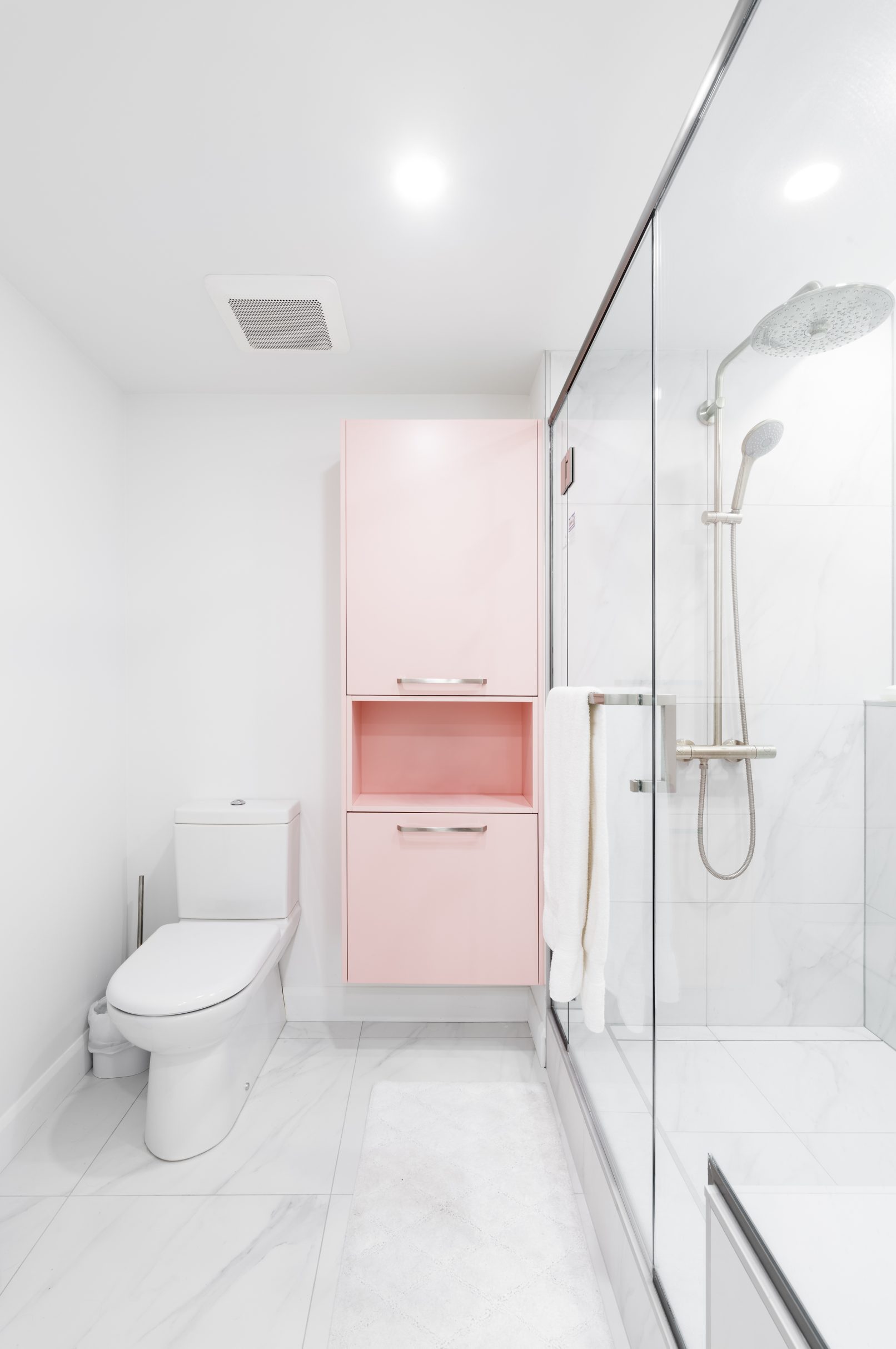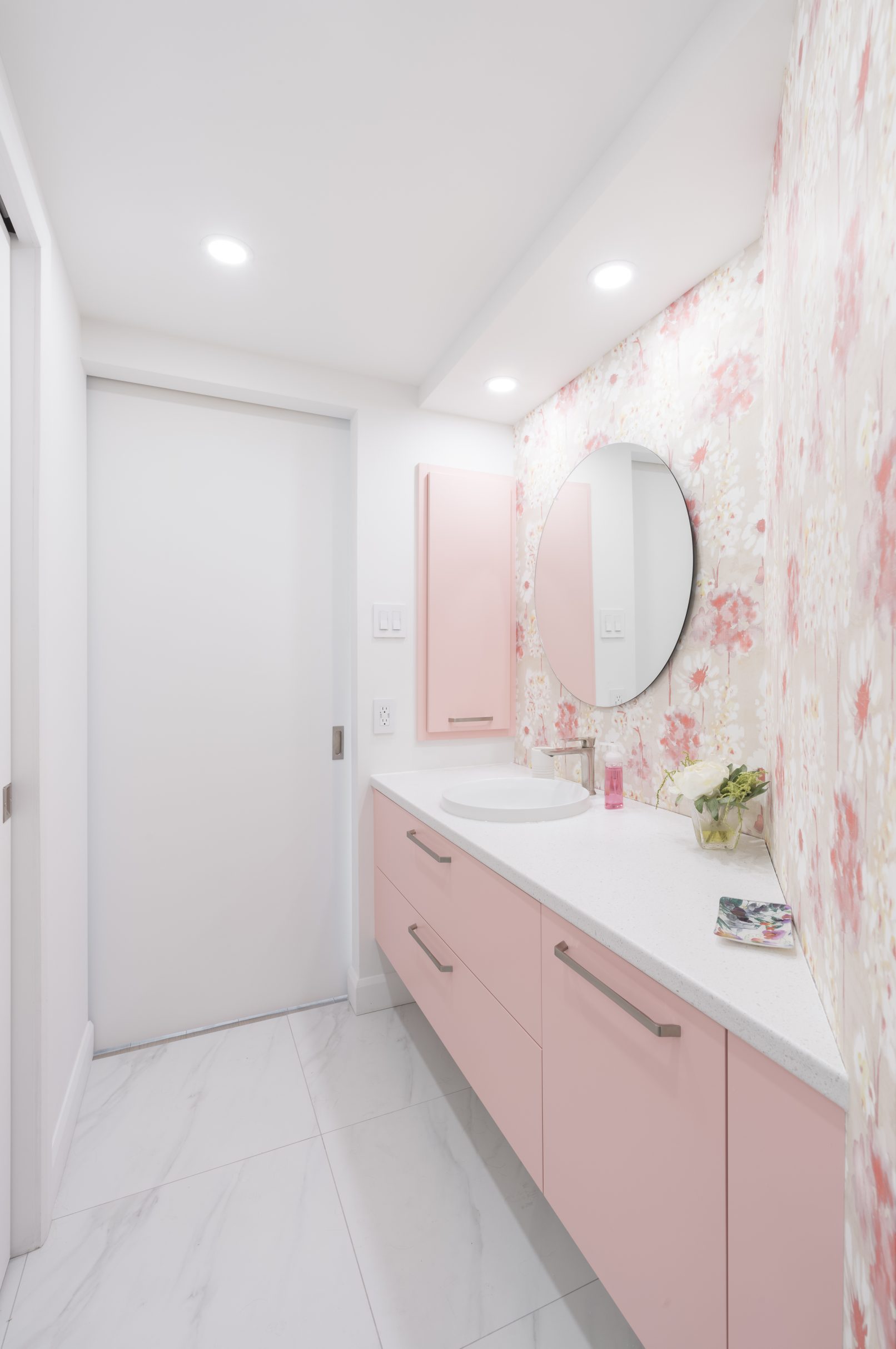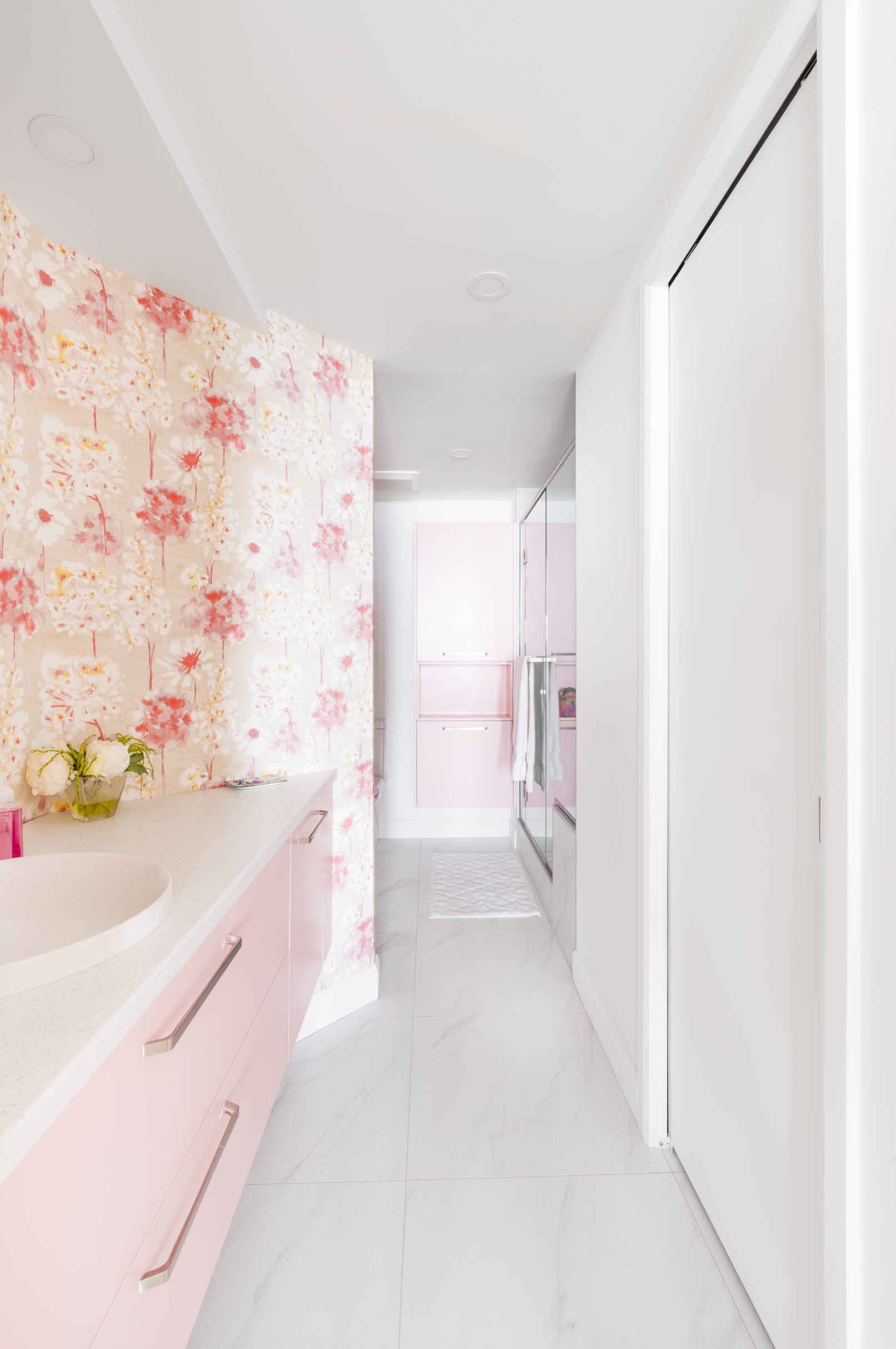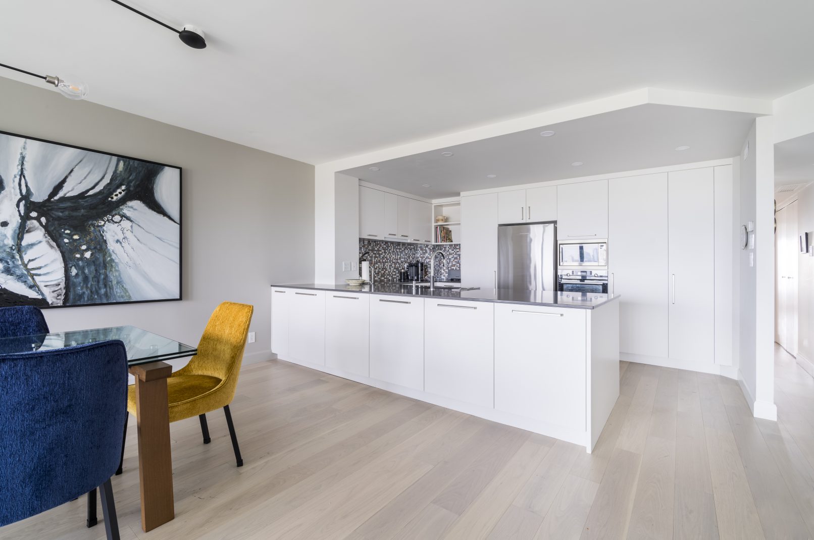 La nouvelle propriétaire désirait donner un second souffle à un condominium qu’elle venait d’acquérir. Elle y avait vu un potentiel et avait eu un coup de coeur. Il n’avait subi aucune rénovation depuis sa construction en 1993. Le défi était de transformer l’espace sans modifier les cloisons intérieures, tout en respectant le budget, pour mettre en valeur l’espace et les vues. Le solarium a été éliminé pour magnifier la vue vers le centre-ville de Montréal. Une touche féminine et personnalisée a été créée par le choix de la coloration des meubles des salles de bains. Le condominium offre désormais un environnement à l’image de la propriétaire : coloré, raffiné et chaleureux.